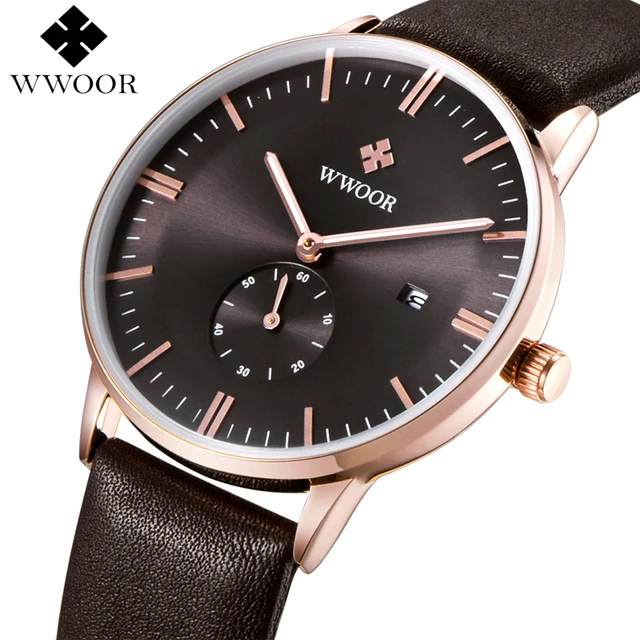 Top Brand Men's Watches WWOOR Date Clock Luxury Business Quartz Wristwatch Men Brown Leather Strap Sport Watch relogio masculino