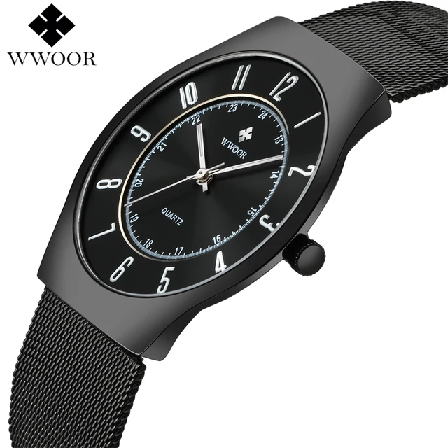 WWOOR Top Brand Luxury Men Ultra Thin Waterproof Sports Watches Men's Quartz Wrist Watch Male Slim Black Clock relogio masculino